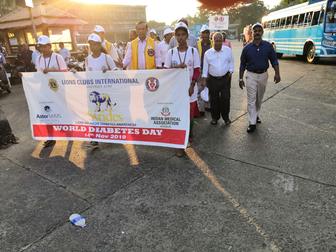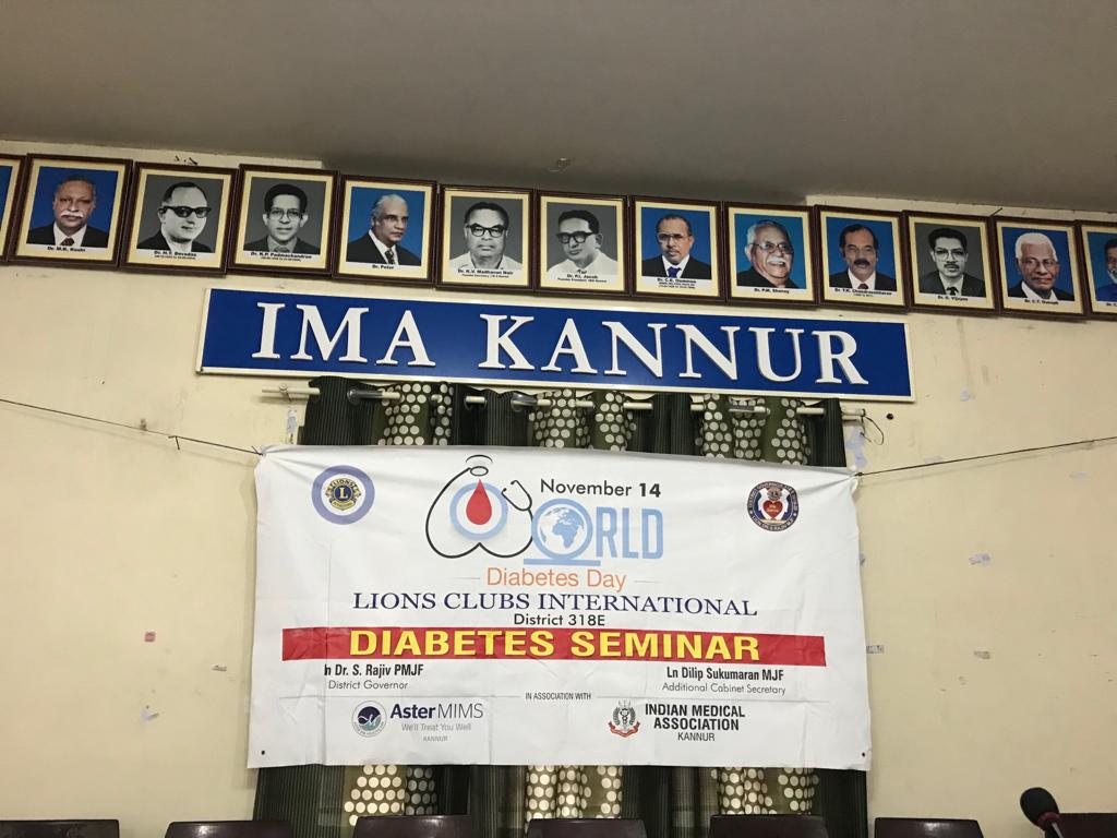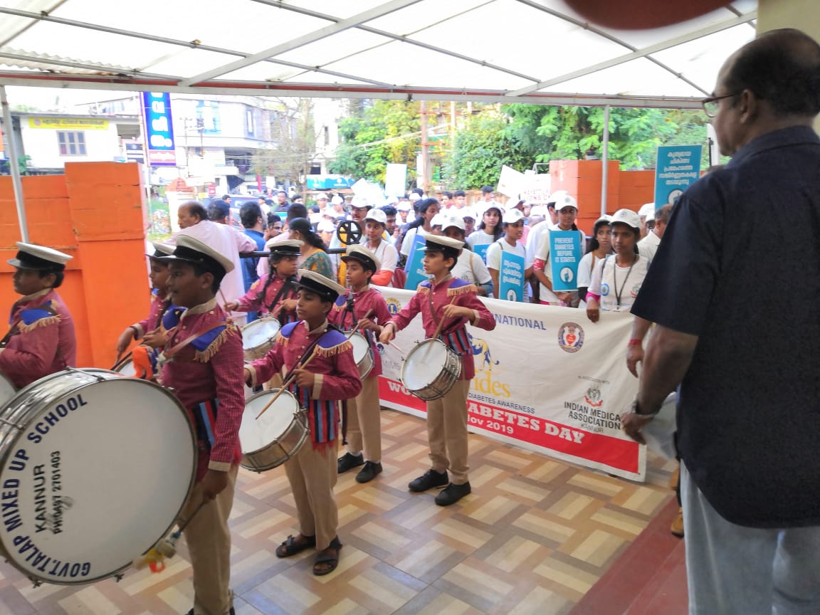 On 14/11/19 IMA Kannur conducted two programmes.The first one was a rally for the awareness about Diabetes mellitus as November 14th was World Diabetes day.The rally was conducted in association with Lions club International.Dr B V Bhat, President IMA Kannur,Dr Rajeev (District Governor of Lions club),Dr Sudheer (paediatrician) and Dr Nazar (diabetologist) took classes for the public.More than 500 people attended the function.